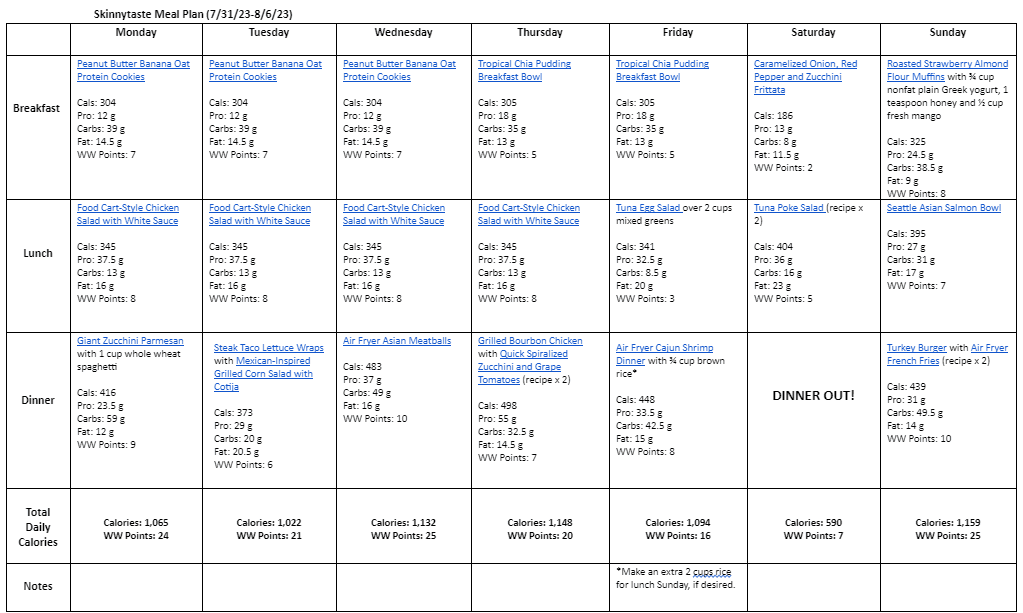 Free 7 Day Healthy Meal Plan (July 31-August 6)