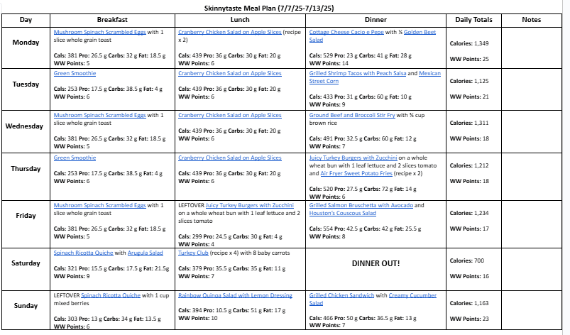 Free 7 Day Healthy Meal Plan (July 7-13)