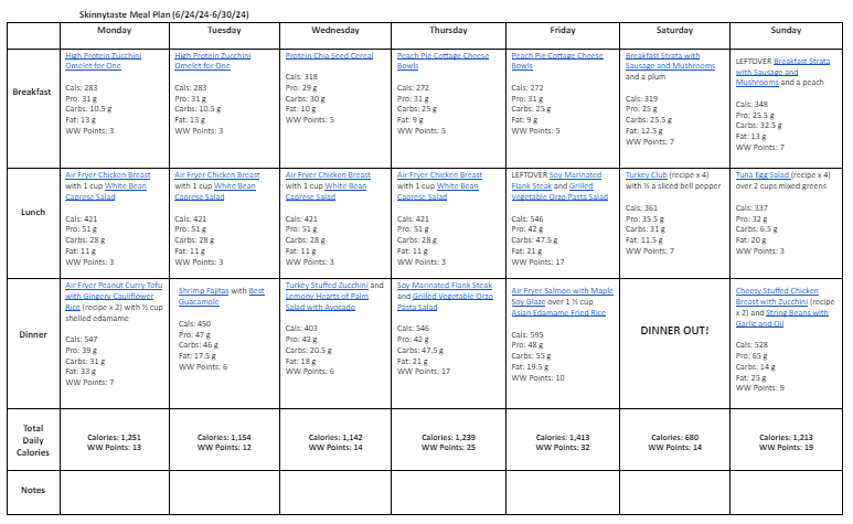 Free 7 Day Healthy Meal Plan (June 24-30)