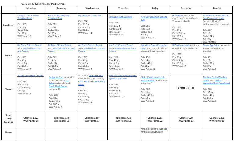Free 7 Day Healthy Meal Plan (June 3-9)