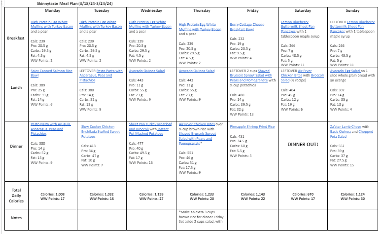 Free 7 Day Healthy Meal Plan (March 18-24)