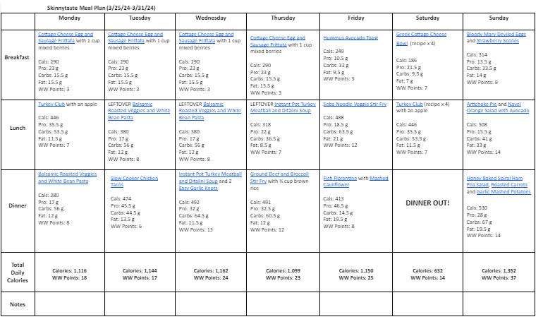 Free 7 Day Healthy Meal Plan (March 25-31)