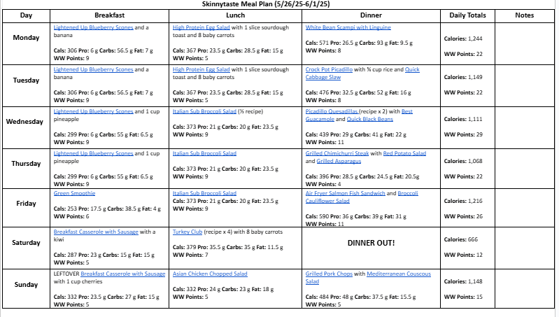 Free 7 Day Healthy Meal Plan (May 26-June 1)