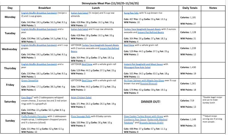 Free 7 Day Healthy Meal Plan (Nov. 10-16)