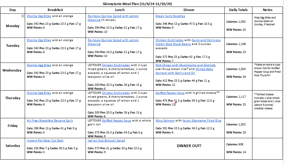Free 7 Day Healthy Meal Plan (November 4-10)