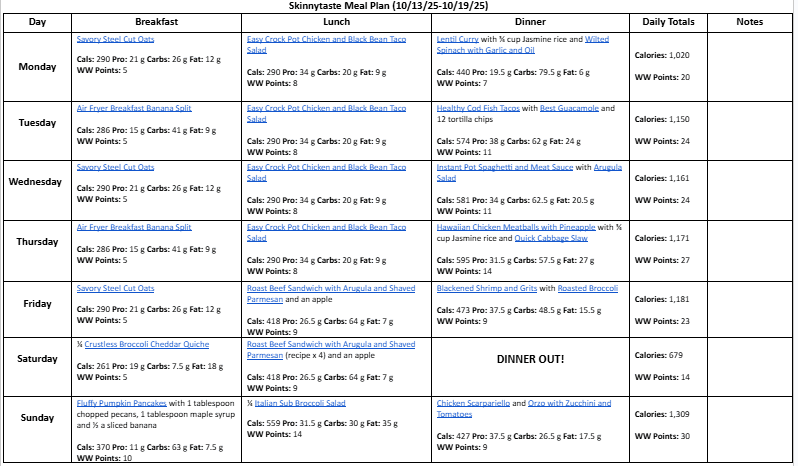 Free 7 Day Healthy Meal Plan (Oct. 13-19)