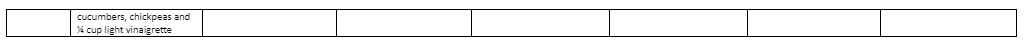 *Green salad includes 6 cups mixed greens, 2 scallions, ½ cup each: tomatoes, carrots, cucumbers, chickpeas and ¼ cup light vinaigrette