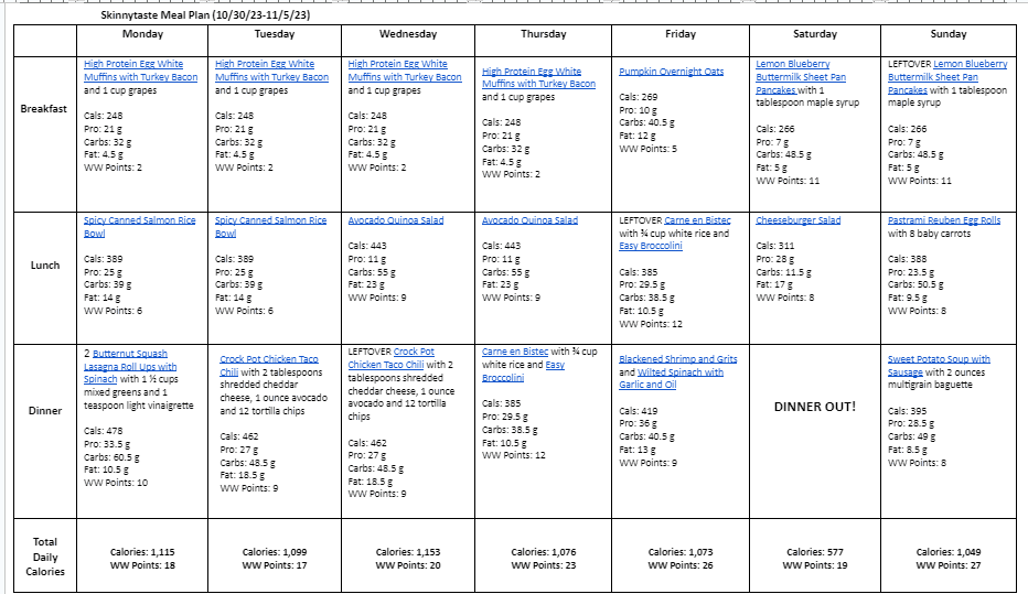 Free 7 Day Healthy Meal Plan (Oct 30-Nov 5)