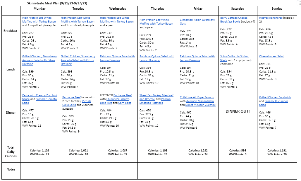 Free 7 Day Healthy Meal Plan (Sept 11-17)