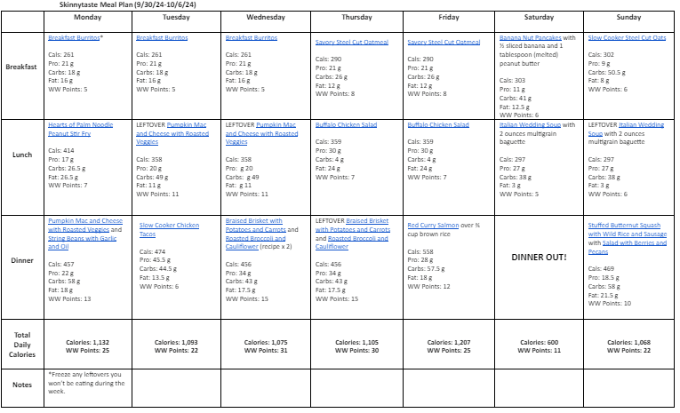 Free 7 Day Healthy Meal Plan (Sept 30-Oct 6)