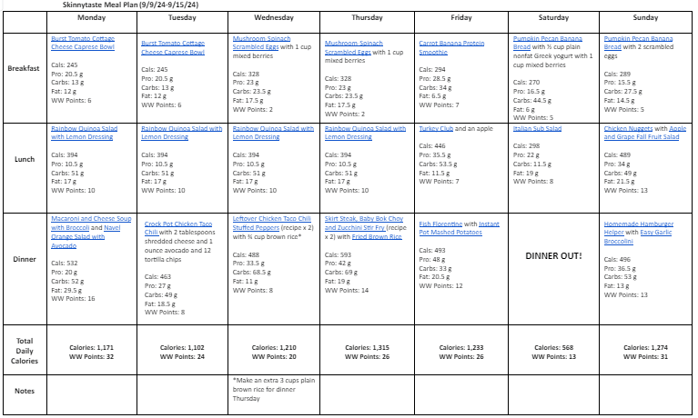 Free 7 Day Healthy Meal Plan (Sept 9-15)