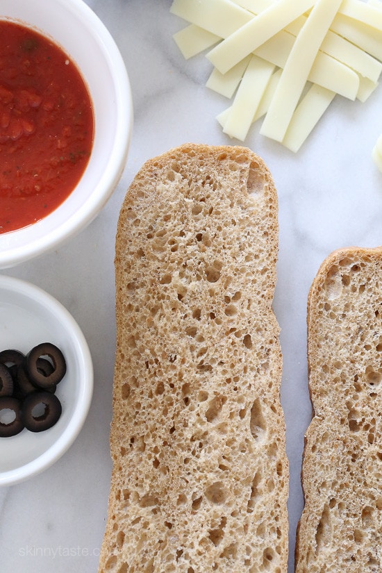 As a kid I loved coming home from school and making myself a French bread pizza, probably one of the first things I taught myself to make. I still make them for my kids only instead of using white bread, I make them healthier with a whole wheat baguette.