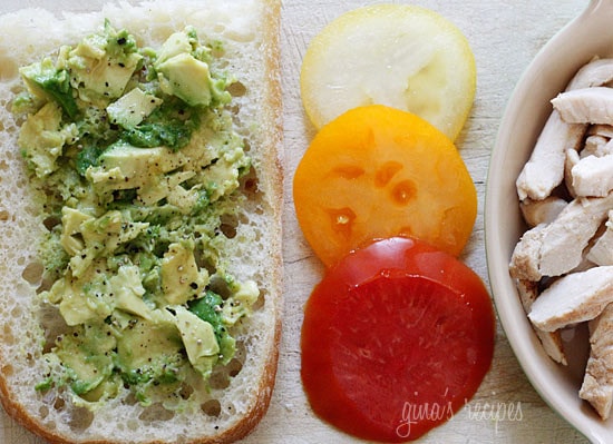 Avocado is a wonderful healthy option in place of mayonnaise and it adds such great flavor. Yesterday I mentioned how good tasting bread is crucial for me in the sandwich making process, and Ciabatta is another fat free option I love to use. Although it’s usually fat free, always double check the labels.