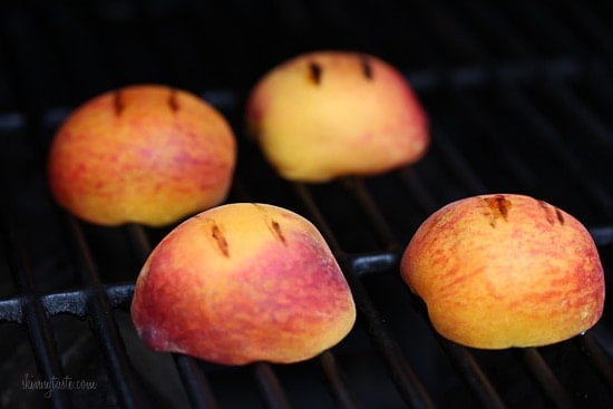 - Grill the peaches, covered on low or indirect heat until soft, about 2-4 minutes on each side.