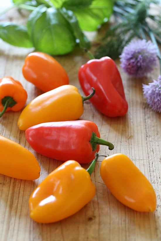 - 16 mini rainbow peppers, halved, seeds and membranes removed
