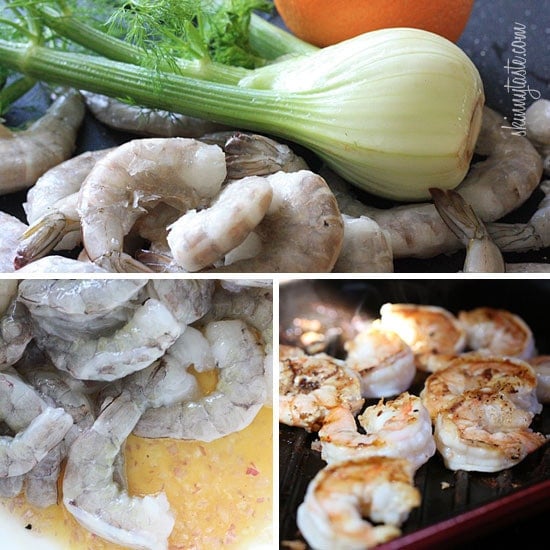This recipe is for my friend Raquel who texts me photos of her fancy dishes she eats when she dines out, then asks me how to make it. I told her I would try to recreate it for her, but wasn’t too excited about the idea of fennel. Because she raved about it so much, I bought all the ingredients anyway and to my surprise, the fennel didn’t bother me at all! I think the trick is that I shaved it real thin with my mandoline, and I loved the way it paired with the citrus and the grilled shrimp.
