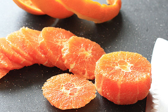 - 2 navel oranges, peeled and sliced