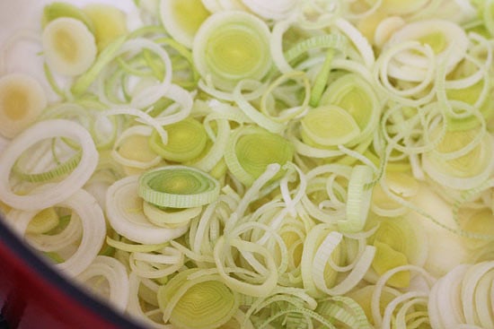 - 1 1/2 cups 3 large leeks, white and pale green only, halved lengthwise, sliced thin