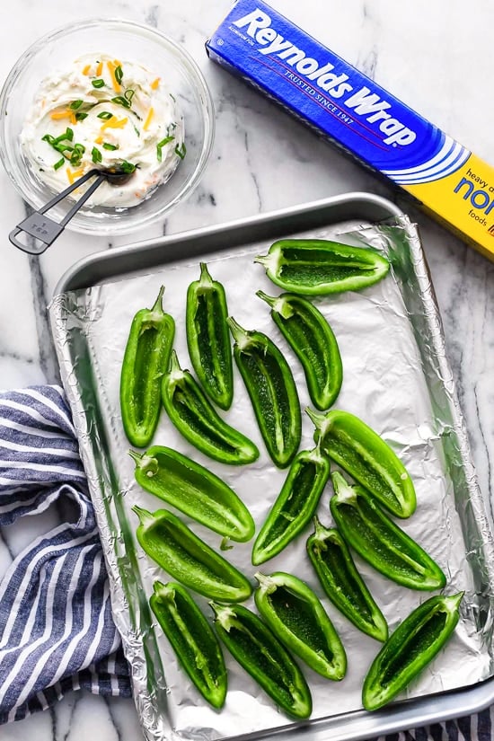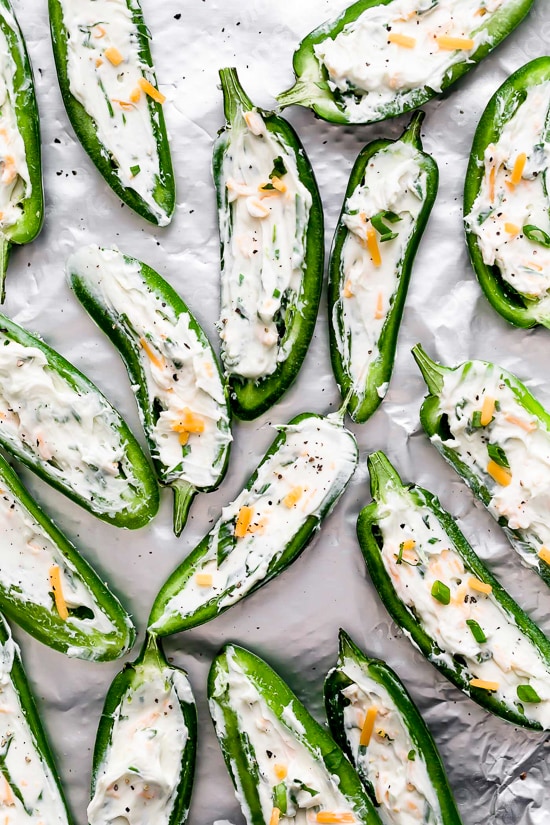- 8 jalapeno peppers, halved and seeded and membranes removed (use gloves)