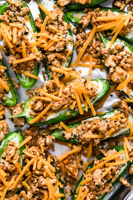 Inspire by my Loaded Mini Bell Pepper Nachos, I spiced things up using jalapeno peppers filled with cream cheese and cheddar instead, before loading on all the toppings!