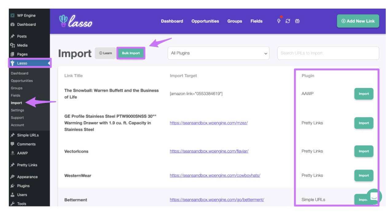 With Lasso, you can import affiliate links from other plugins using Lasso’s plugin import tool.