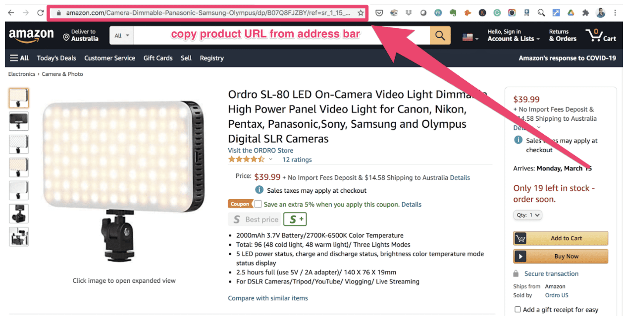 For example, if you’re an Amazon affiliate, all you’d need to do is copy the product URL:
