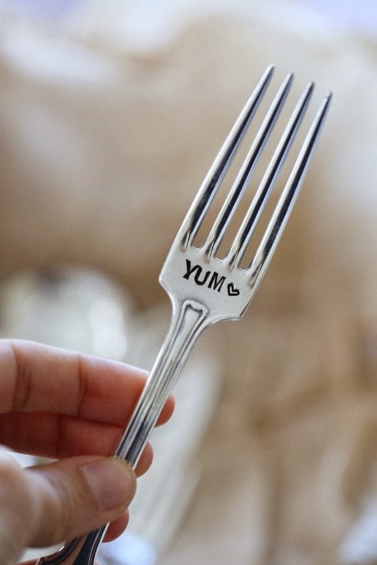 And BTW, the serving spoon in the photo above and fork below is from Such A Time Designs. Beautiful, affordable silver plated one-of-a-kind hand stamped flatware that makes great gifts.