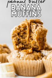 Peanut Butter Banana Muffins are proof that banana bread and peanut butter go together really well! Stuffed with extra peanut butter in the center, they are SO good!
