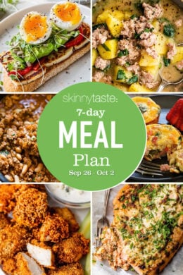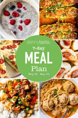 Meal planning is a great way to keep up healthy eating habits. If you’ve struggled to find a weekly meal plan that works for you and your family, today is your lucky day! Every week, I release a free, flexible 7-day meal plan featuring my favorite healthy recipes. Whether your goal is weight loss, eating healthier, or just changing up your weekly routine, the possibilities are endless when it comes to planning out fun, easy, and nutritious dishes! With your creativity and some Skinnytaste expertise, you’ll never run out of new breakfast, lunch, and dinner ideas.