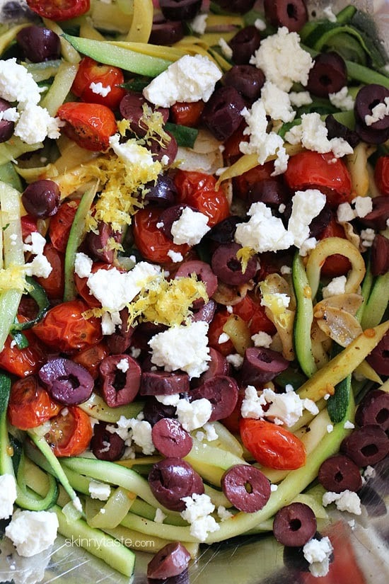 - Remove the vegetables from the oven toss with Kalamata olives, juice of lemon and lemon rind.