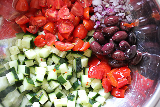 I adapted my turkey burger with zucchini recipe and added fresh oregano and Feta cheese to the burgers. Then I made a simple Greek salad with cucumbers, tomatoes, red onion, roasted peppers, olives and the results were outstanding! I’ll be making these all summer. If you want a more traditional burger with all the fixins, try this turkey burger recipe.