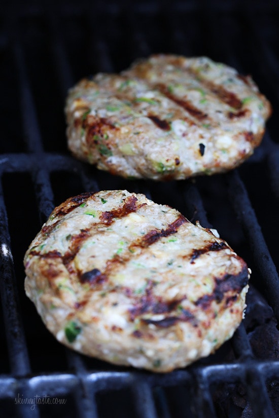 Naked Greek Feta-Zucchini Turkey Burgers are so juicy, thanks to my secret ingredient, grated zucchini!