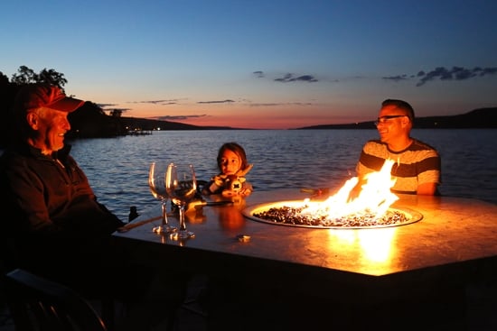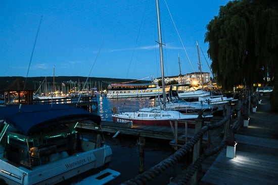 6:30 pm – lakeside dinner outside on the patio at Watkins Glen Harbor Hotel, 16 North Franklin Street, just minutes from our rental house.
