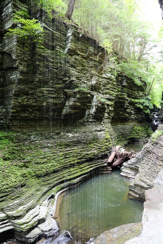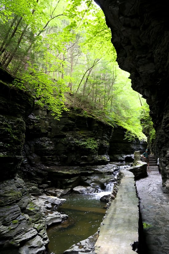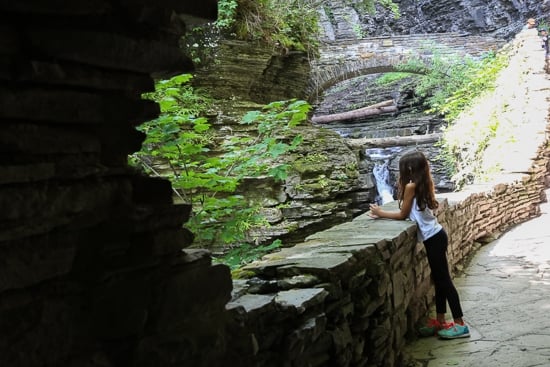 This beautiful park and falls left us spellbound – a stop you cannot miss! An easy two mile hike for kids and adults, within those two miles, the glen’s stream descends 400 feet past 200-foot cliffs, generating 19 waterfalls along its course. The gorge path winds over and under waterfalls and through the spray of Cavern Cascade. It was voted the #3 State Park in the Country by USA Today readers in 2015 and is the most famous of the Finger Lakes State Parks.