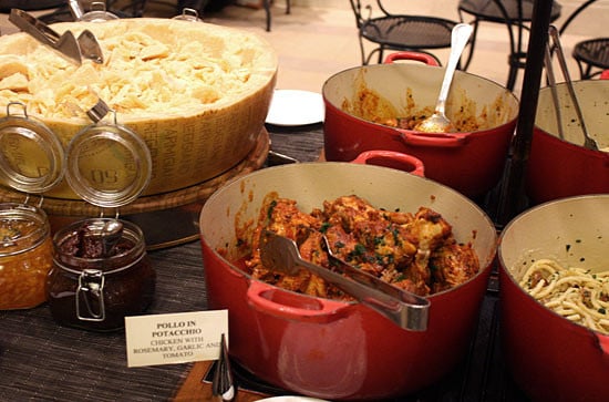 They had a really great rustic buffet with an Italian menu developed by Chef Trabocchi. The buffet had an array of cured meats, served with artisan bread, Parmigiano-Reggiano cheese and marinated olives, salad, pasta, eggplant and chicken. Pollo in Potacchio was one of the dishes on the buffet that I tried and I knew I wanted to recreate.