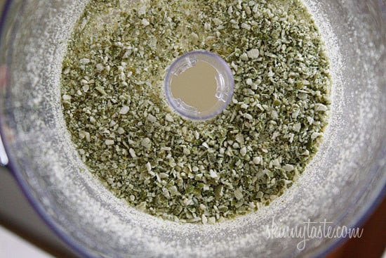 - Grind the pumpkin seeds in a food processor or coffee grinder.