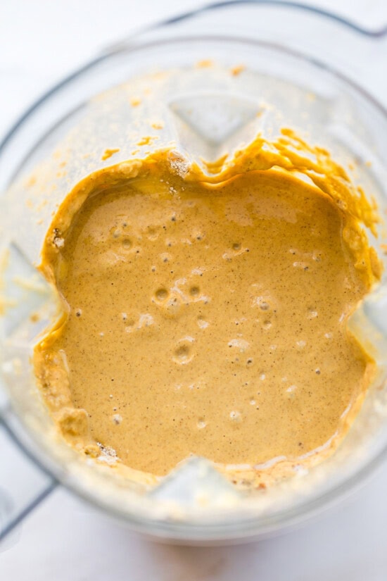 - Blend the cottage cheese, pumpkin, egg yolks, vanilla, and sugar in a blender. Add water, oat flour, cinnamon, pumpkin pie spice, baking powder, and salt, and blend until the mixture is smooth.
