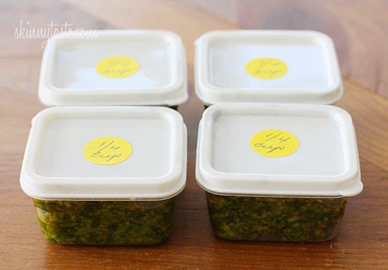 As much as I look forward to the Fall, I’m not quite ready for summer to be over. Having fresh herbs at my fingertips is what I’ll miss the most, so I’m taking all my basil and making skinny pesto with it to freeze and use throughout the year.