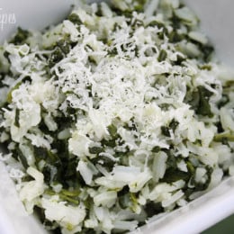 - Toss rice with spinach and top with good grating cheese like Pecorino Romano.