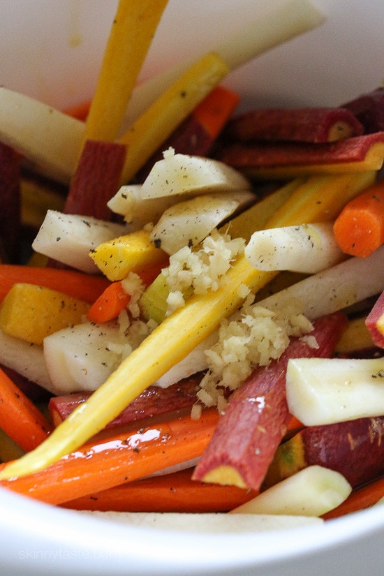 Roasted Rainbow Carrots with Ginger – An easy side dish that would make a delicious and beautiful addition to your Holiday table!