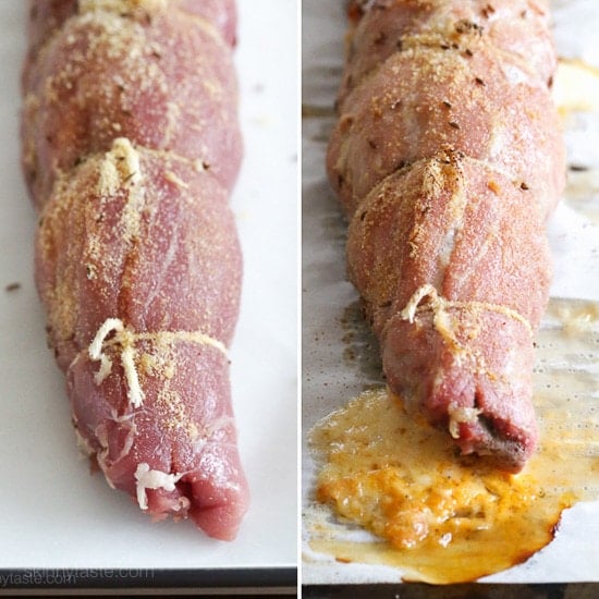 This turned out even better than I could have imagined! The pork with juicy, cheese was hot and melted and this had so much flavor. Pork tenderloin is very lean cut, if you don’t eat pork, you can use a turkey tenderloin instead.