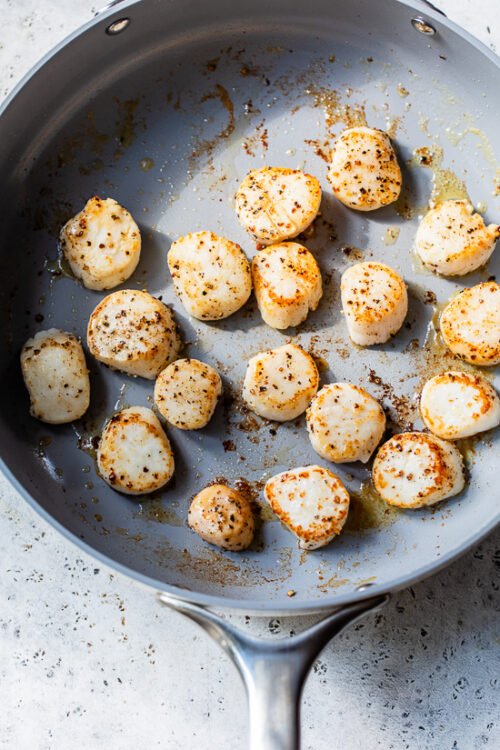 - Hot Pan: Cook the scallops in a really hot skillet. Once it is heated, add the scallops but don’t touch them until you’re ready to flip them.