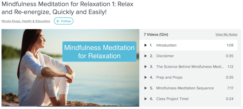 This quick class will teach you how to relax your mind and body, teach you why mindfulness is important, and then it will also guide you through a meditation.