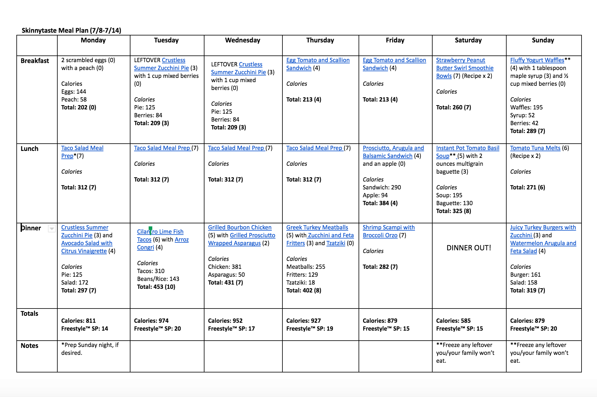 Breakfast and lunch Monday-Friday, are designed to serve 1 while dinners and all meals on Saturday and Sunday are designed to serve a family of 4. Some recipes make enough leftovers for two nights or lunch the next day. While we truly believe there is no one size fits all meal plan, we did our best to come up with something that appeals to a wide range of individuals. Everything is Weight Watchers friendly, I included the updated Weight Watcher Freestyle Points for your convenience, feel free to swap out any recipes you wish or just use this for inspiration!