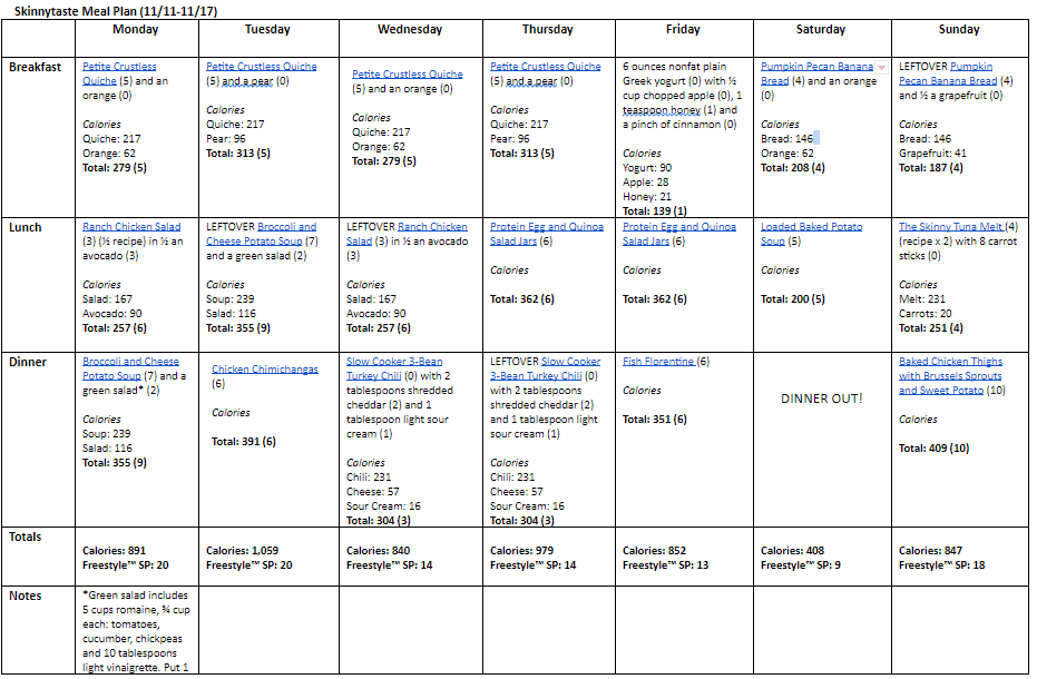 Breakfast and lunch Monday-Friday, are designed to serve 1 while dinners and all meals on Saturday and Sunday are designed to serve a family of 4. Some recipes make enough leftovers for two nights or lunch the next day. While we truly believe there is no one size fits all meal plan, we did our best to come up with something that appeals to a wide range of individuals. Everything is Weight Watchers friendly, I included the updated Weight Watcher Freestyle Points for your convenience, feel free to swap out any recipes you wish or just use this for inspiration!