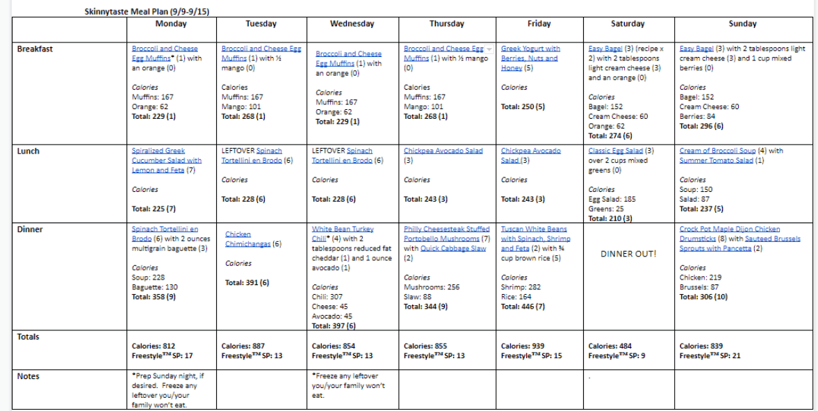Breakfast and lunch Monday-Friday, are designed to serve 1 while dinners and all meals on Saturday and Sunday are designed to serve a family of 4. Some recipes make enough leftovers for two nights or lunch the next day. While we truly believe there is no one size fits all meal plan, we did our best to come up with something that appeals to a wide range of individuals. Everything is Weight Watchers friendly, I included the updated Weight Watcher Freestyle Points for your convenience, feel free to swap out any recipes you wish or just use this for inspiration!