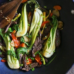 Skirt Steak, Baby Bok Choy and Zucchini Stir-Fry