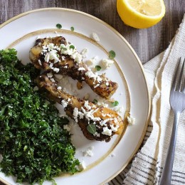 Every now and then I like to take recipes I would normally make in the oven and try them out in my slow cooker. Some of you might recognize this Roasted Lemon Feta Chicken recipe from the archives. Often they convert great for the slow cooker with some slight modifications. These drumsticks were fall of the bone, with great flavor and the only difference was rather than adding the feta and broiling them in the oven, I served the chicken on a platter and added the fresh grated feta cheese after which melted from the heat of the drumsticks. I highly recommend buying a chunk of feta and grating it yourself, it’s moister and tastes so much better. I served this with this massaged raw kale salad using feta instead of parmesan – an easy inexpensive meal.