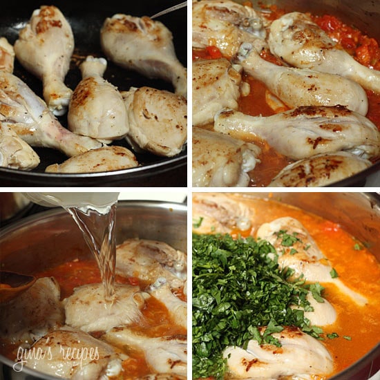 Skinless chicken drumsticks, slowly stewed in light beer, scallions, tomatoes, cilantro, peppers, garlic and spices.