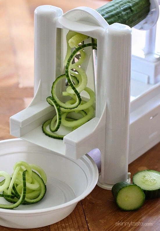- If you don’t own a spiralizer you can just dice the cucumbers with knife and make it a chopped Greek salad instead.